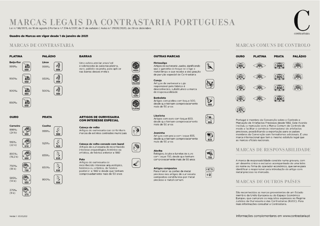 Ao abrigo do Artigo 63.º da lei do RJOC, Lei n. º 120/2017 de 15 de setembro, informamos que as cotações diárias do ouro, da prata, da platina e do paládio podem ser consultadas em: https://www.contrastaria.pt/informacao-consumidor/