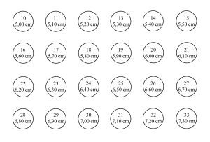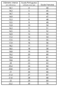 3. Use a tabela abaixo para determinar o diâmetro do anel;