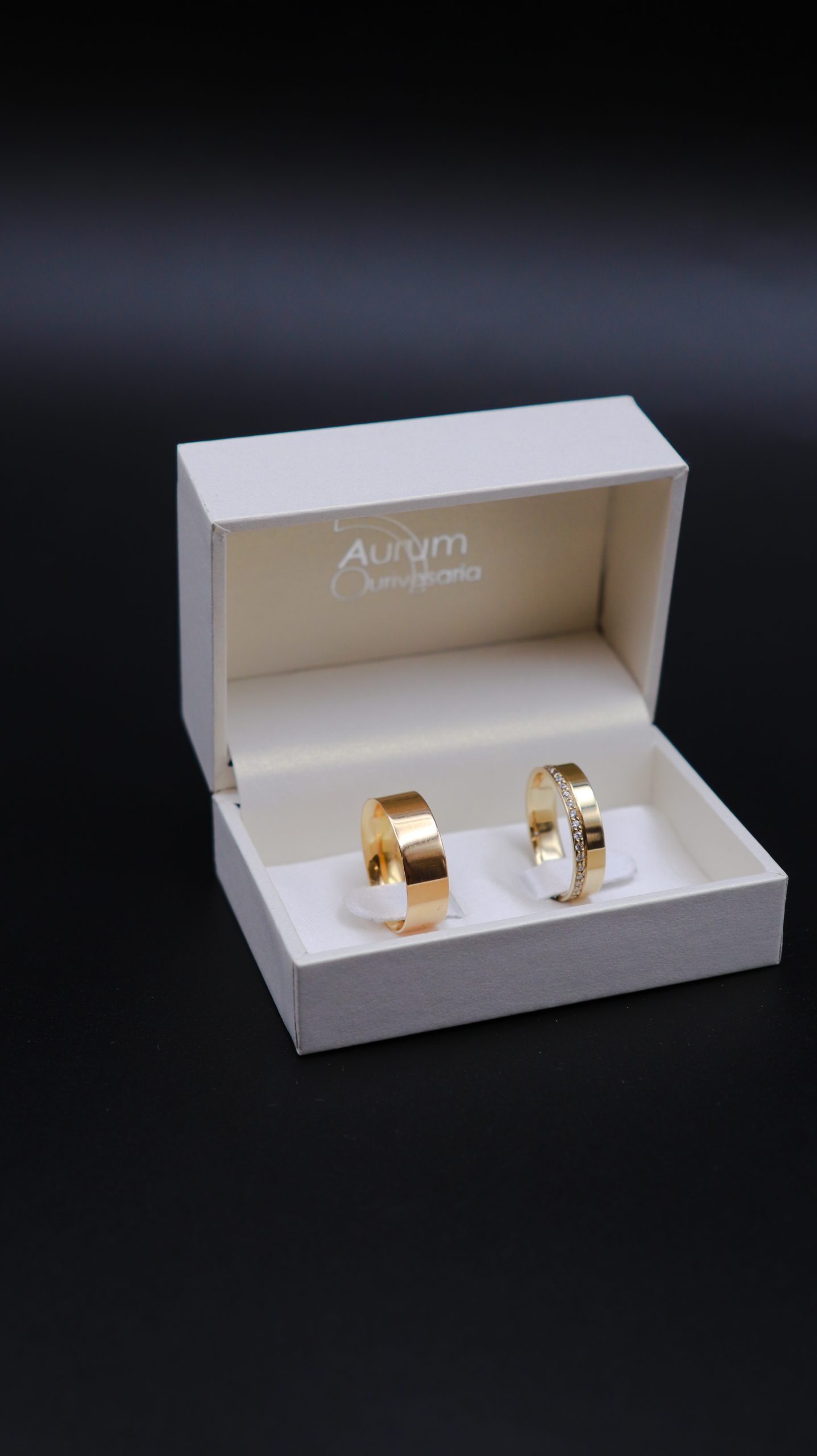 As alianças podem ser feitas em prata de lei (925), ouro de 9 k ou ouro de 19,25 k.