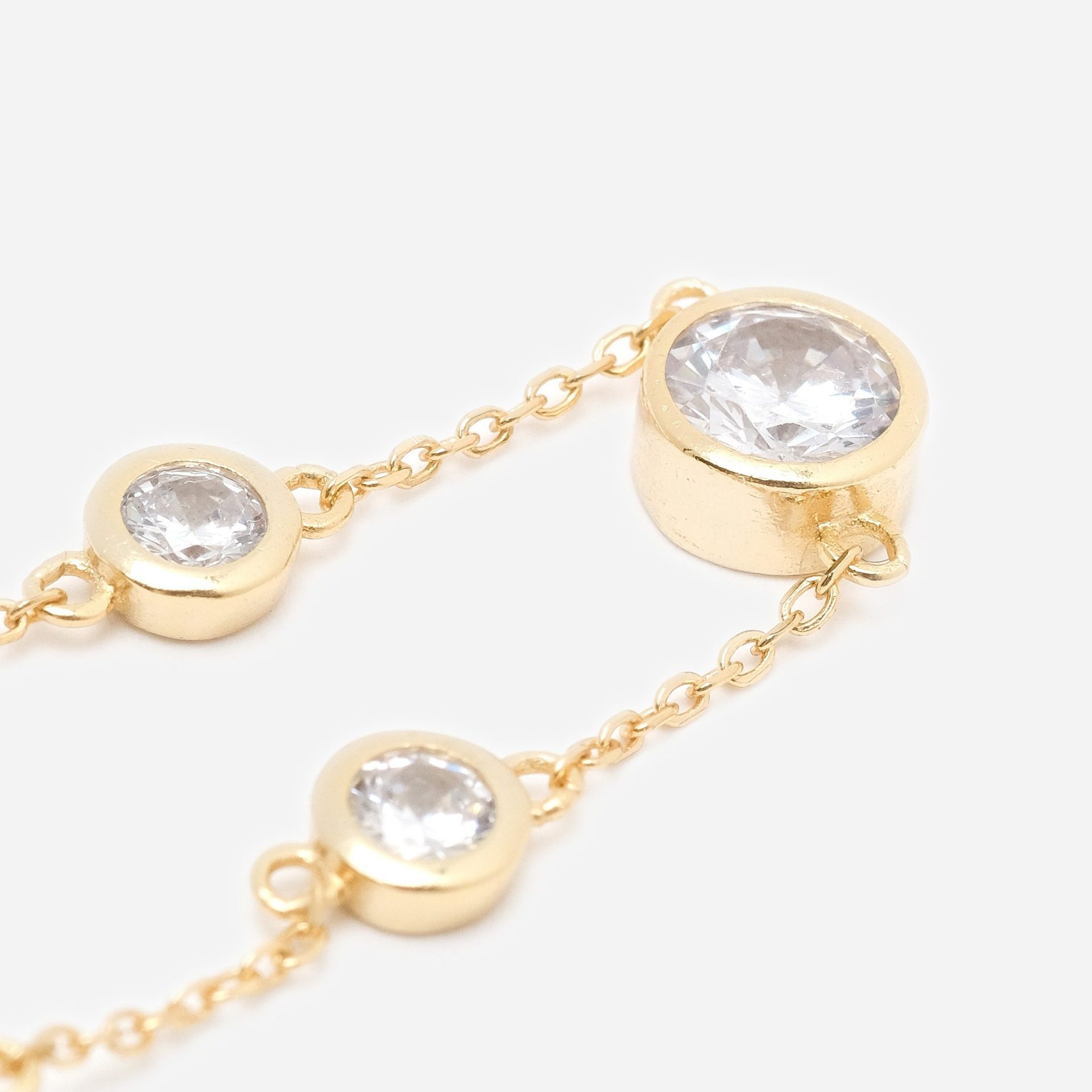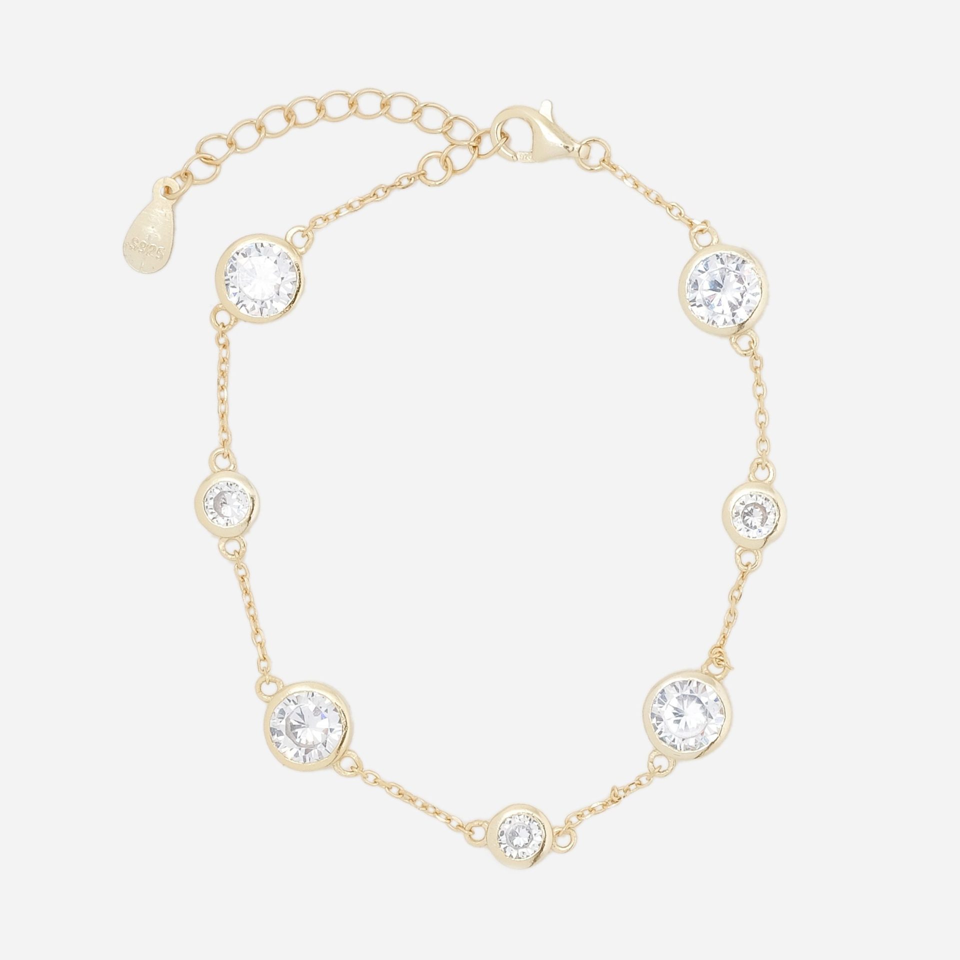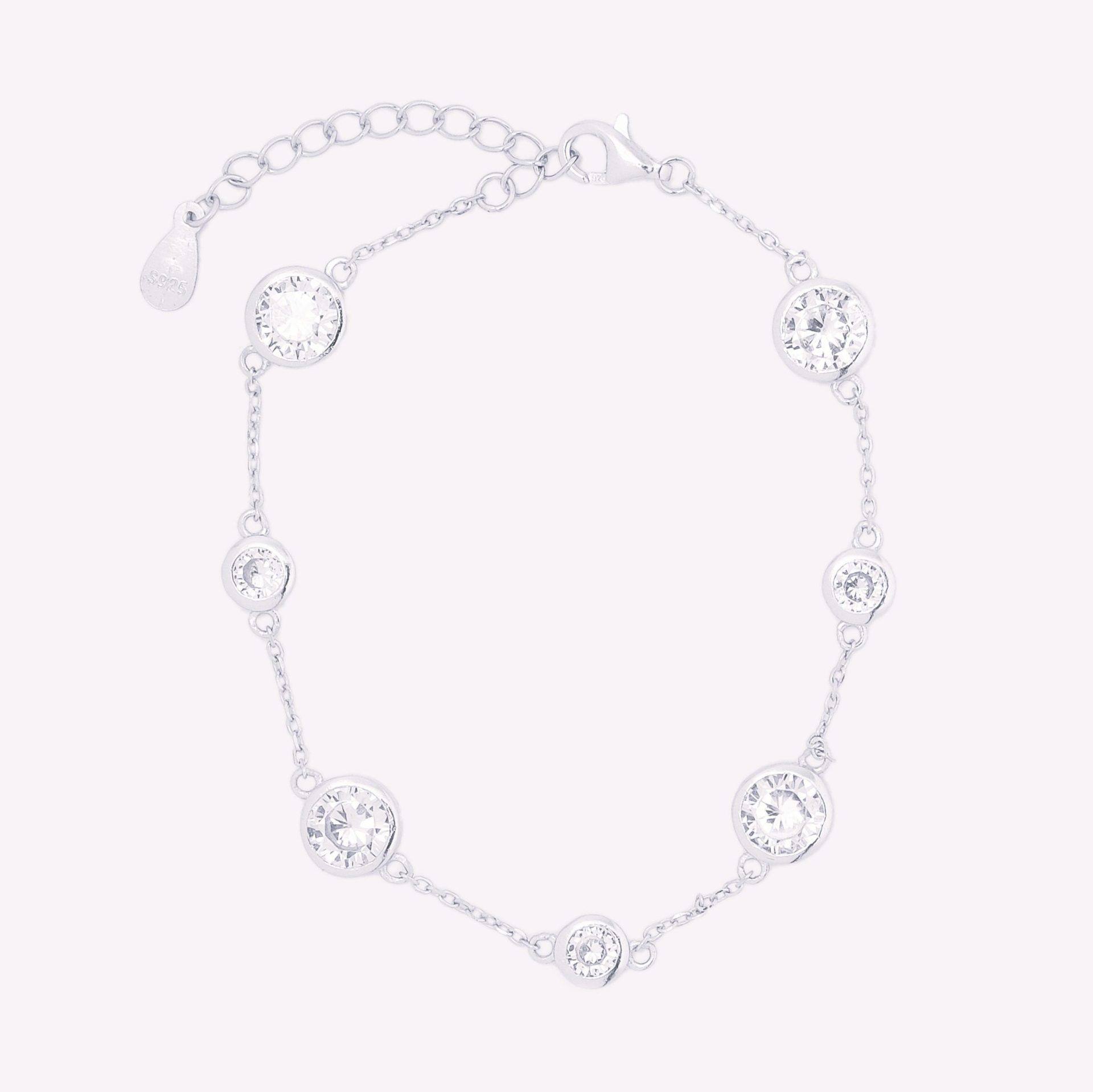 Pulseira com zircónias de dois tamanhos distintos intervaladas a todo o comprimento.