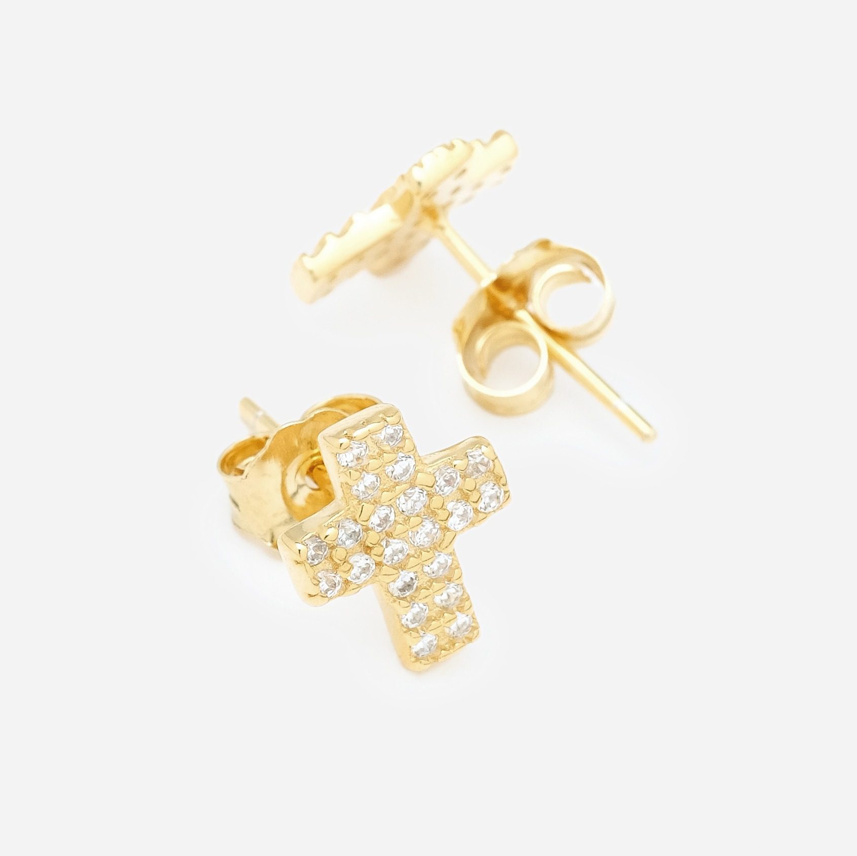 Brincos de tornilho com formato de cruz. Cruz com duas carreiras de zircónias.