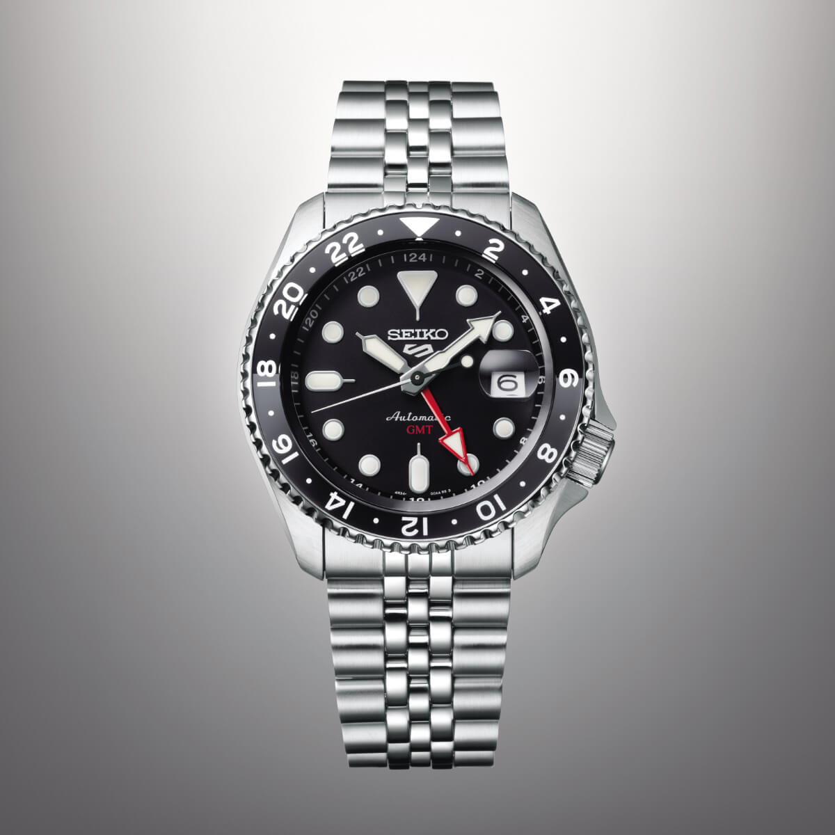 “Este relógio Seiko 5 Sports é uma reedição do icónico Seiko 5 SKX. Graças ao ponteiro GMT e ao bisel com escala de 24 horas, este novo modelo permite realizar cálculos de diferenças horárias facilmente. O bisel coberto com vidro Hardlex aumenta a durabilidade, enquanto os ponteiros e índices revestidos com Lumibrite garantem uma alta legibilidade em condições de baixa luminosidade. A bracelete mantém-se fiel à herança SKX com filas de 5 elos que formam uma série de padrões com pequenos X. A colecção de relógios automáticos Seiko 5 Sports é reconhecida há mais de 50 anos pela sua fiabilidade, durabilidade e desempenho. O ‘’5’’ representa as cinco características chave originais de todos os relógios Seiko 5, presentes até ao dia de hoje: movimento automático, calendário duplo, resistência à água, coroa recuada e bracelete e caixa duradouros.”