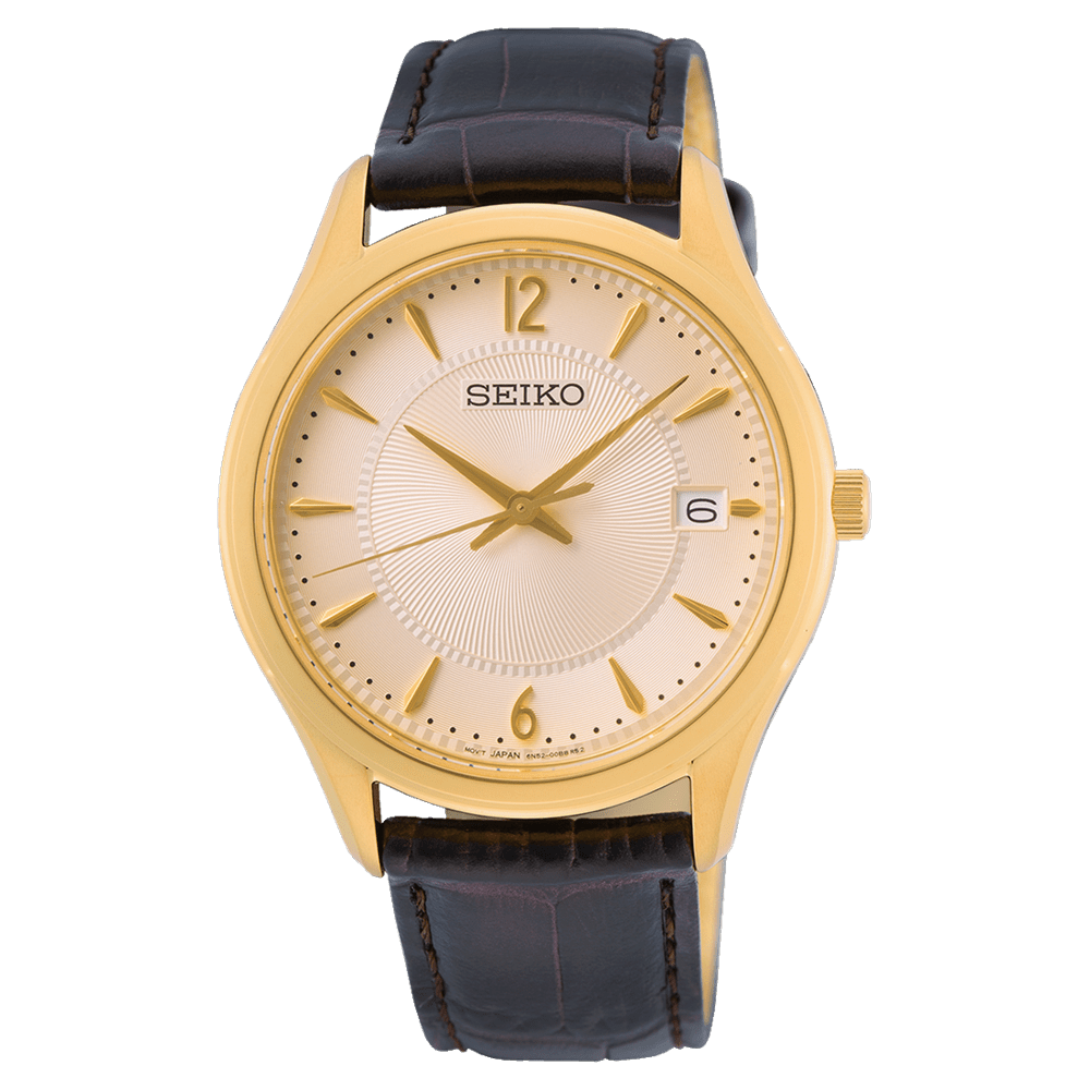 Relógio Seiko Neo Classic Quartzo 3H Dourado com movimento de quartzo e calibre 6N52.