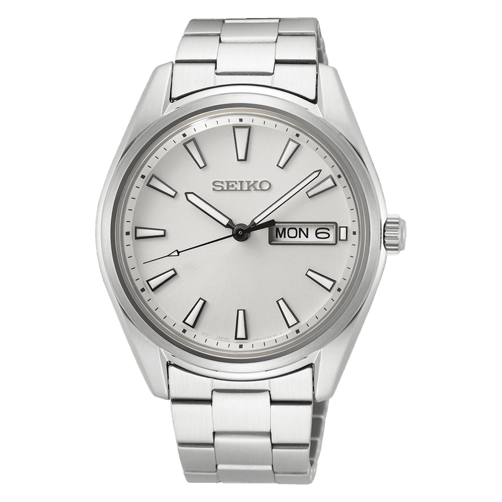 Relógio Seiko Neo Classic Solar, calibre 6N53, com safira (vidro) e 40,2 mm de diâmetro. Bracelete em aço e mostrador prateado.