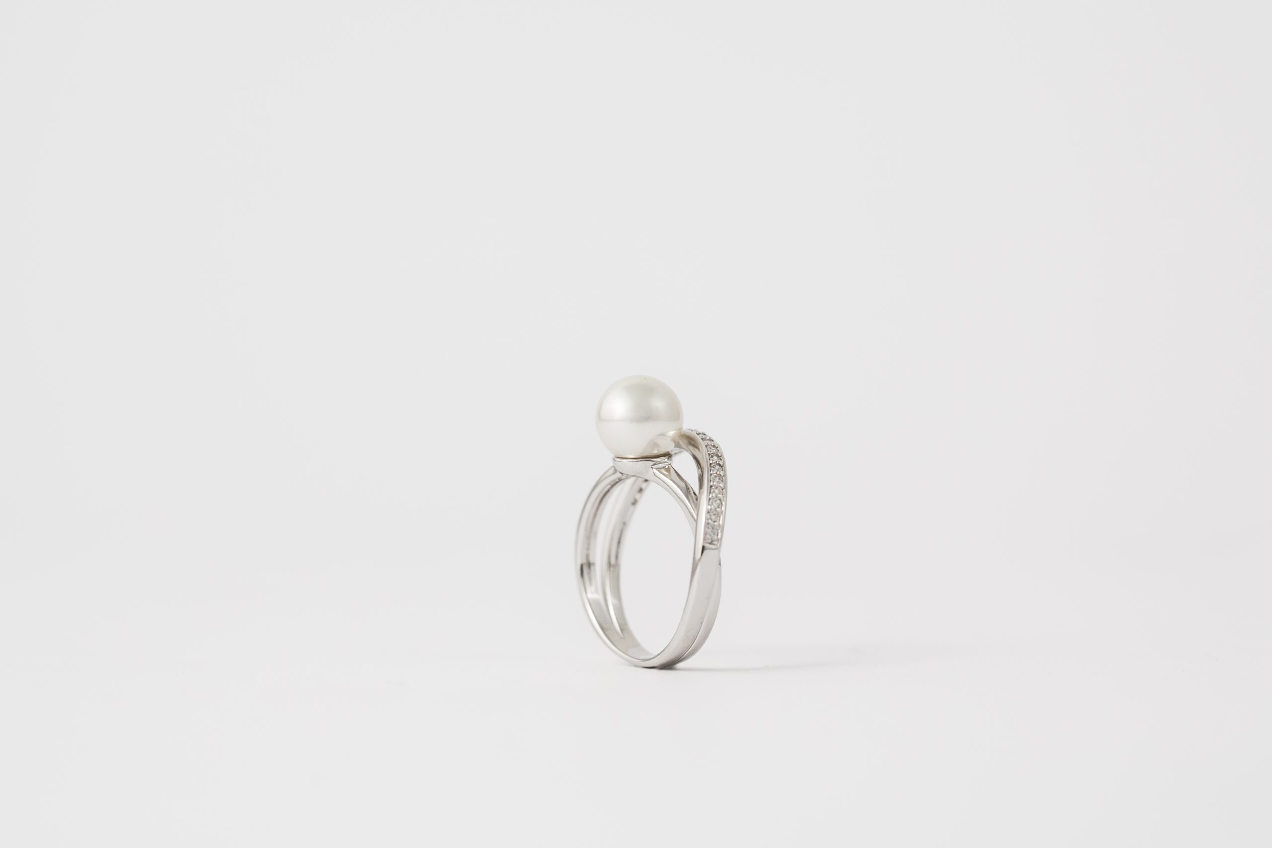 Anel de Prata Clássico com pérola orgânica de 8 mm produzida na ilha de Maiorca. Prata de lei 925 com banho de ródio.