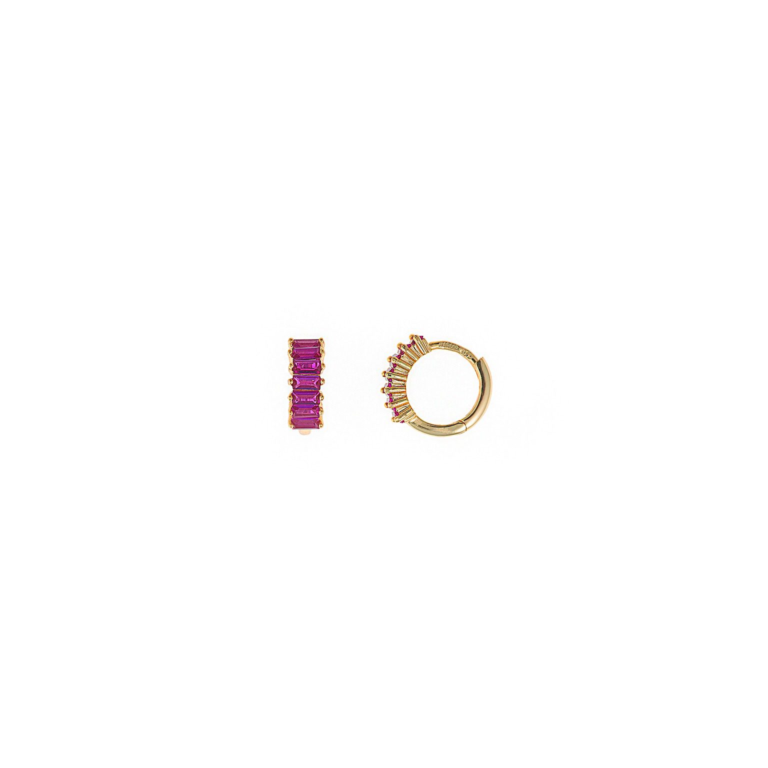 Argolas com zircónias retas rosa.