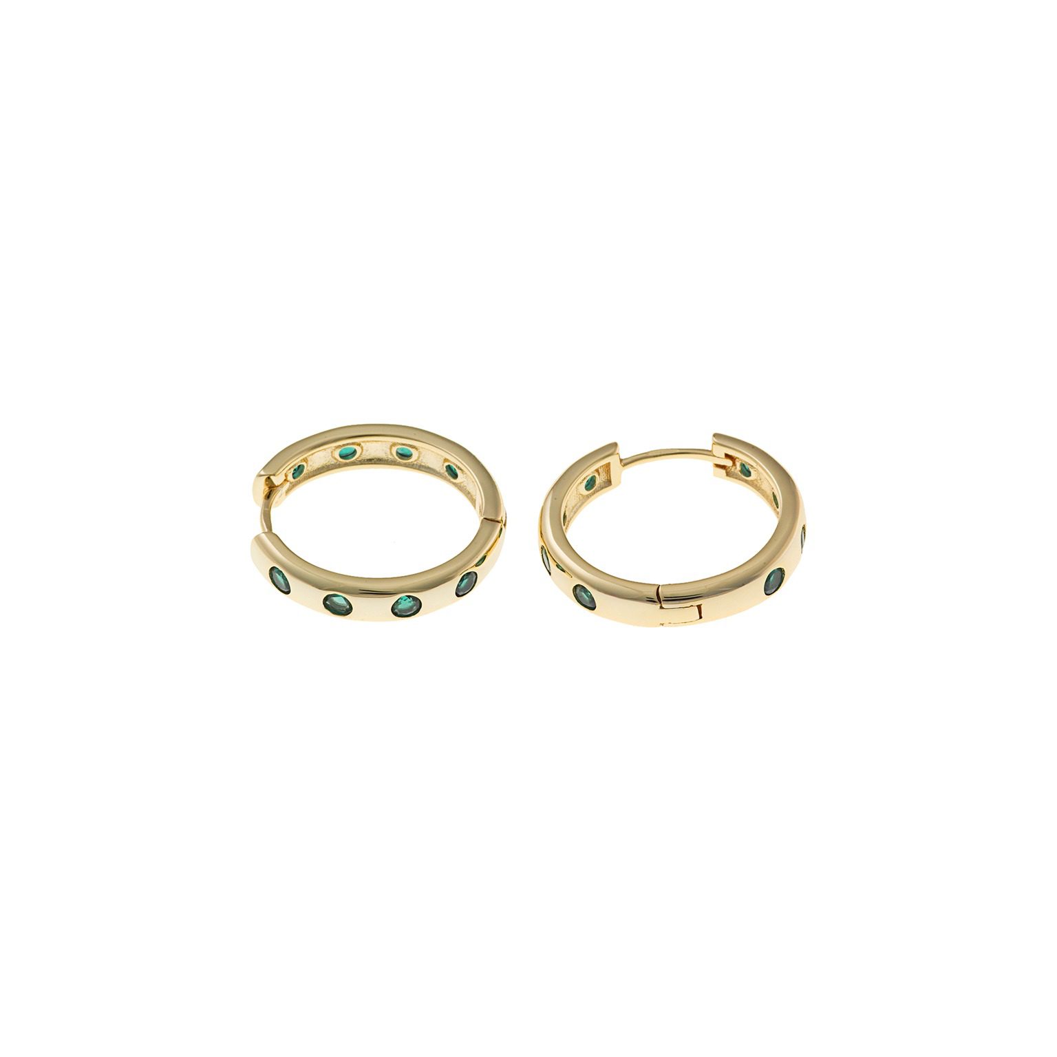 Argolas com zircónias verdes espaçadas a toda a volta.