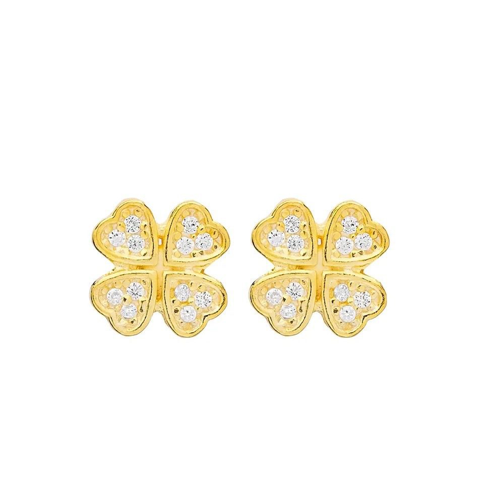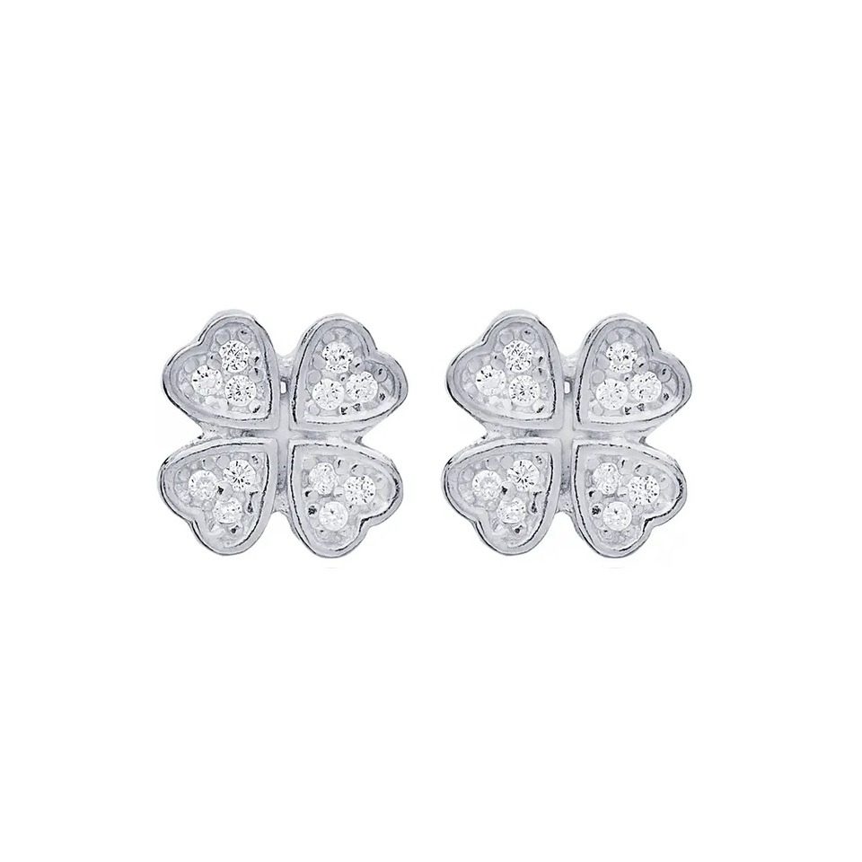 Brincos de tornilho com formato de trevo. Trevo com zircónias nas pétalas.
