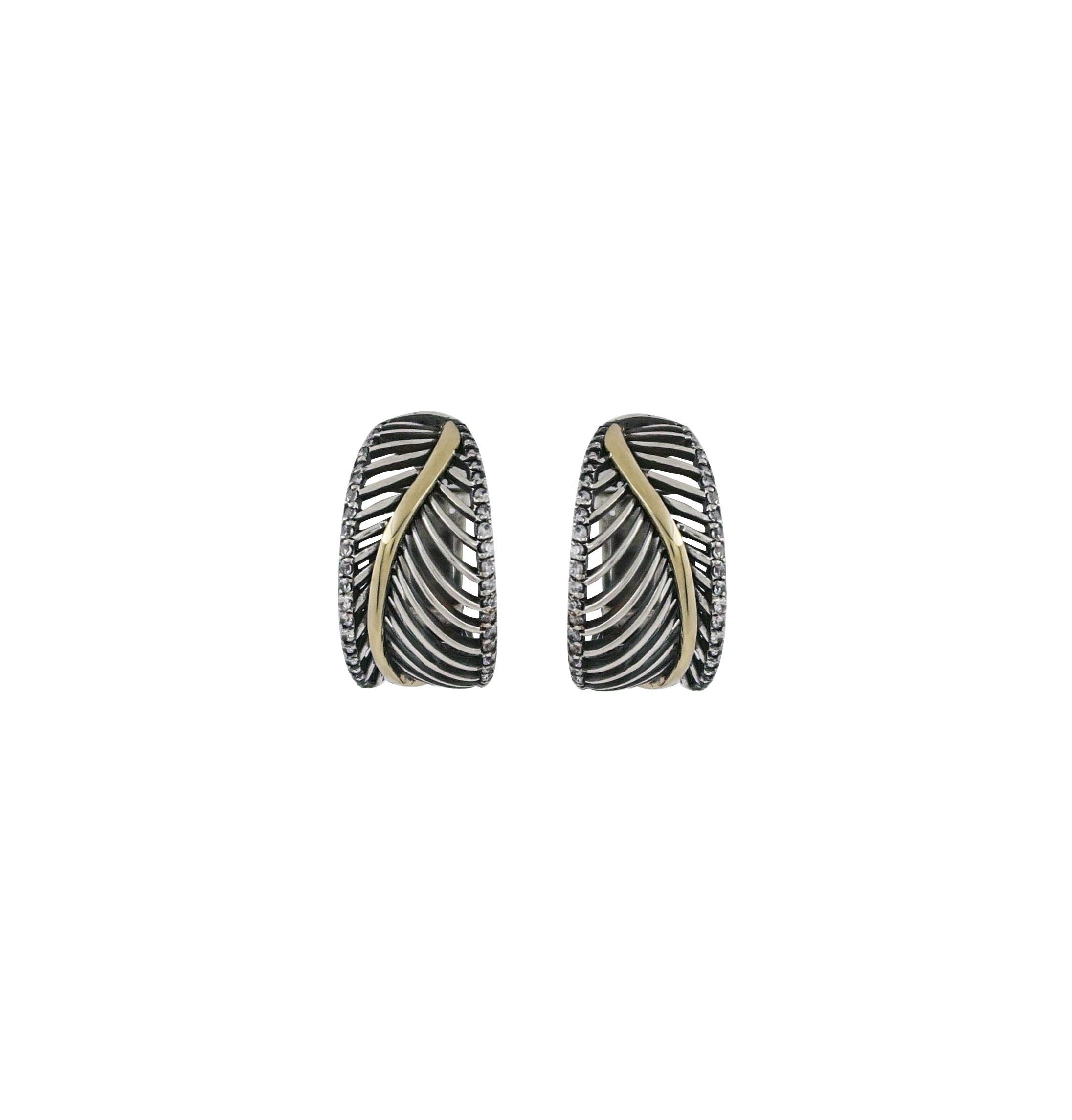 Brincos em prata de lei e ouro de 9 kt com zircónias.