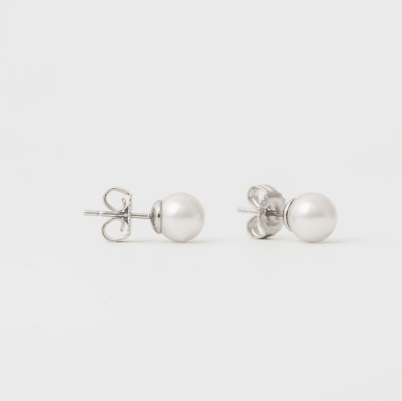 Brincos Clássico com pérolas orgânicas de 6 mm produzidas na ilha de Maiorca e prata de lei 925 com banho de ródio.