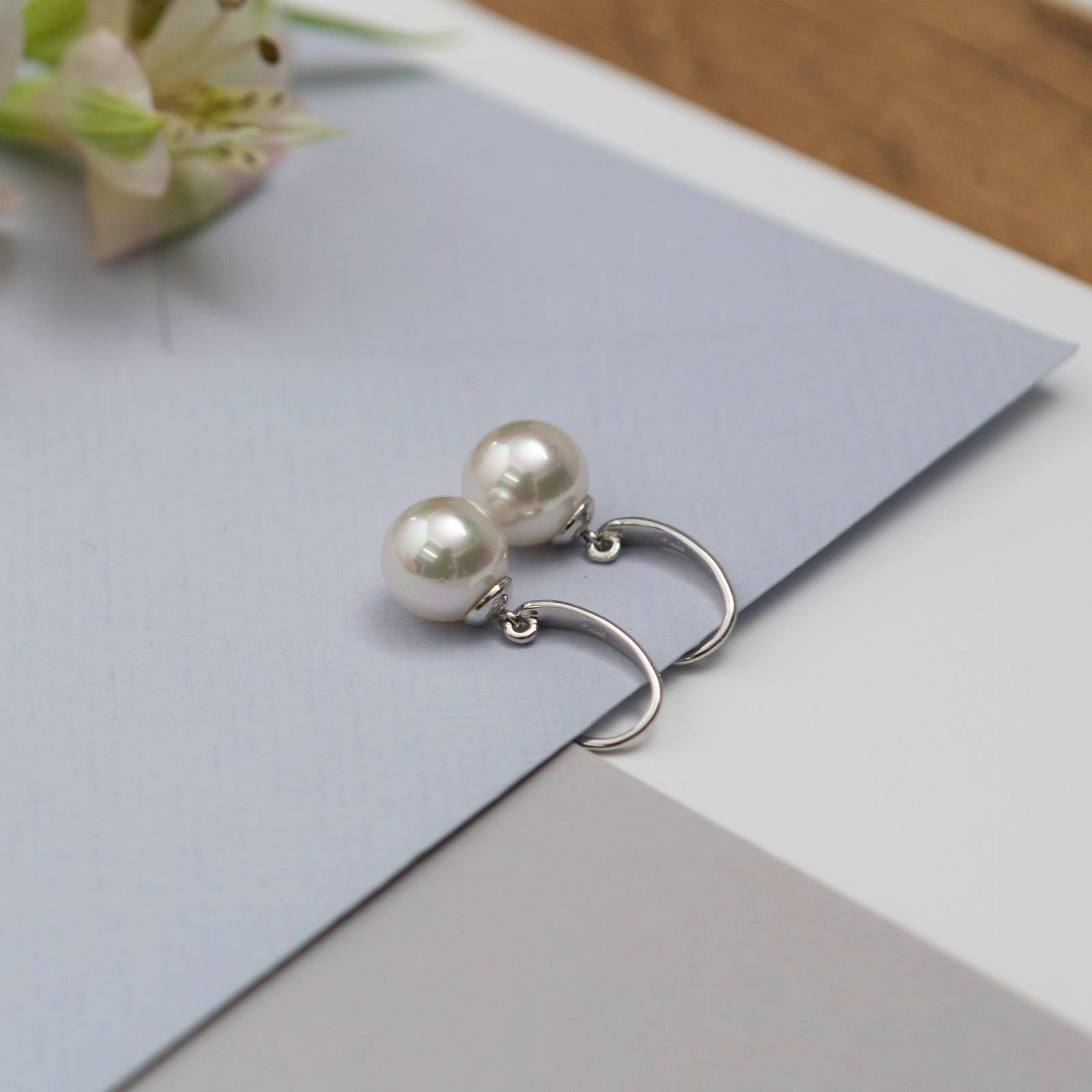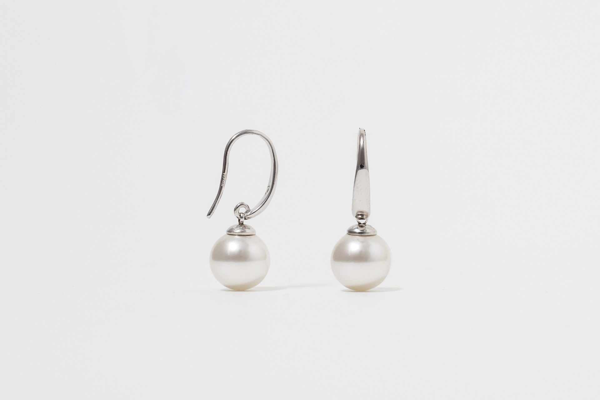 Brincos Lyra com pérolas orgânicas de 10 mm produzidas na ilha de Maiorca. Prata de lei 925 com banho de ródio.