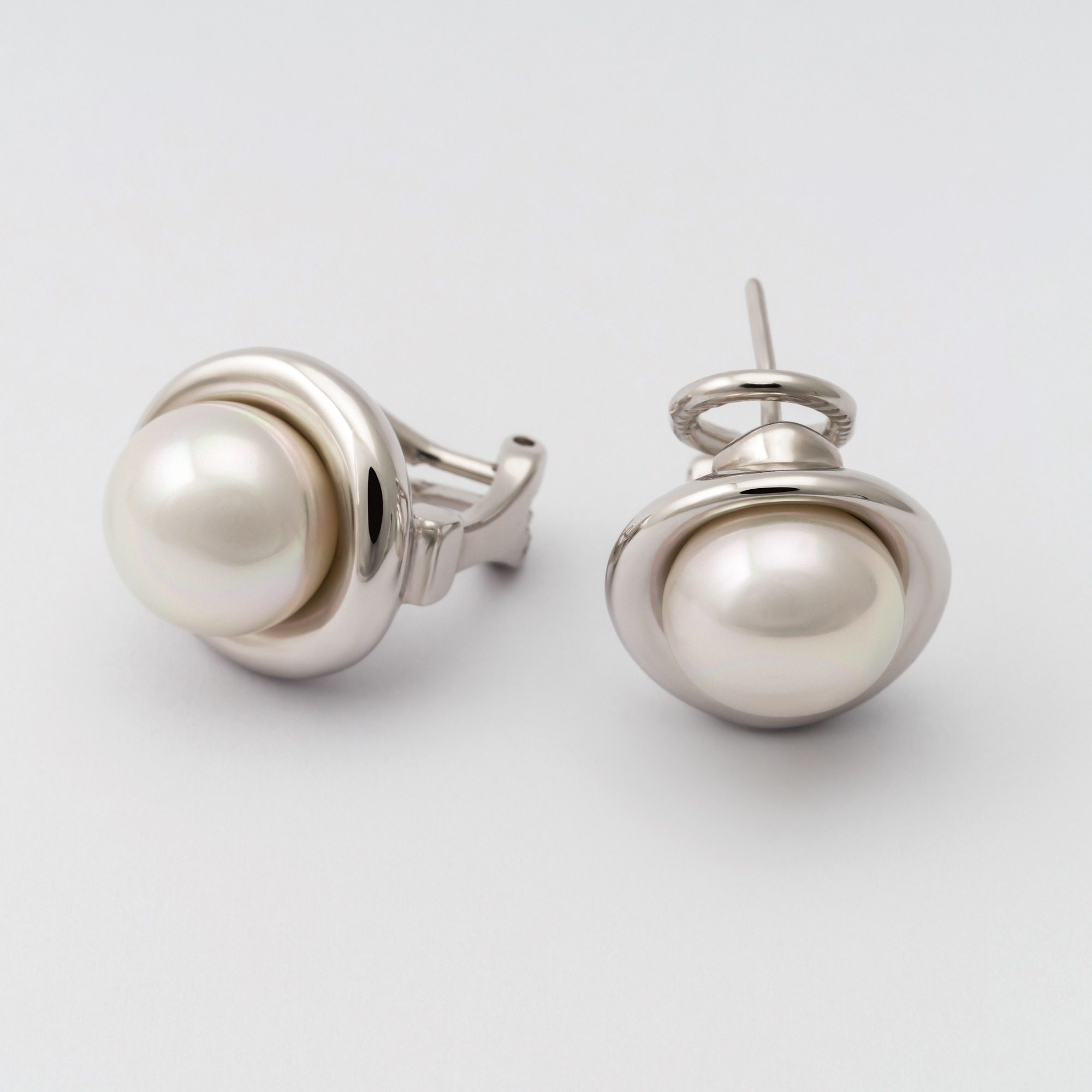 Brincos Margot com pérolas orgânicas de 10mm produzidas na ilha de Maiorca. Prata de lei 925 com banho de ródio.