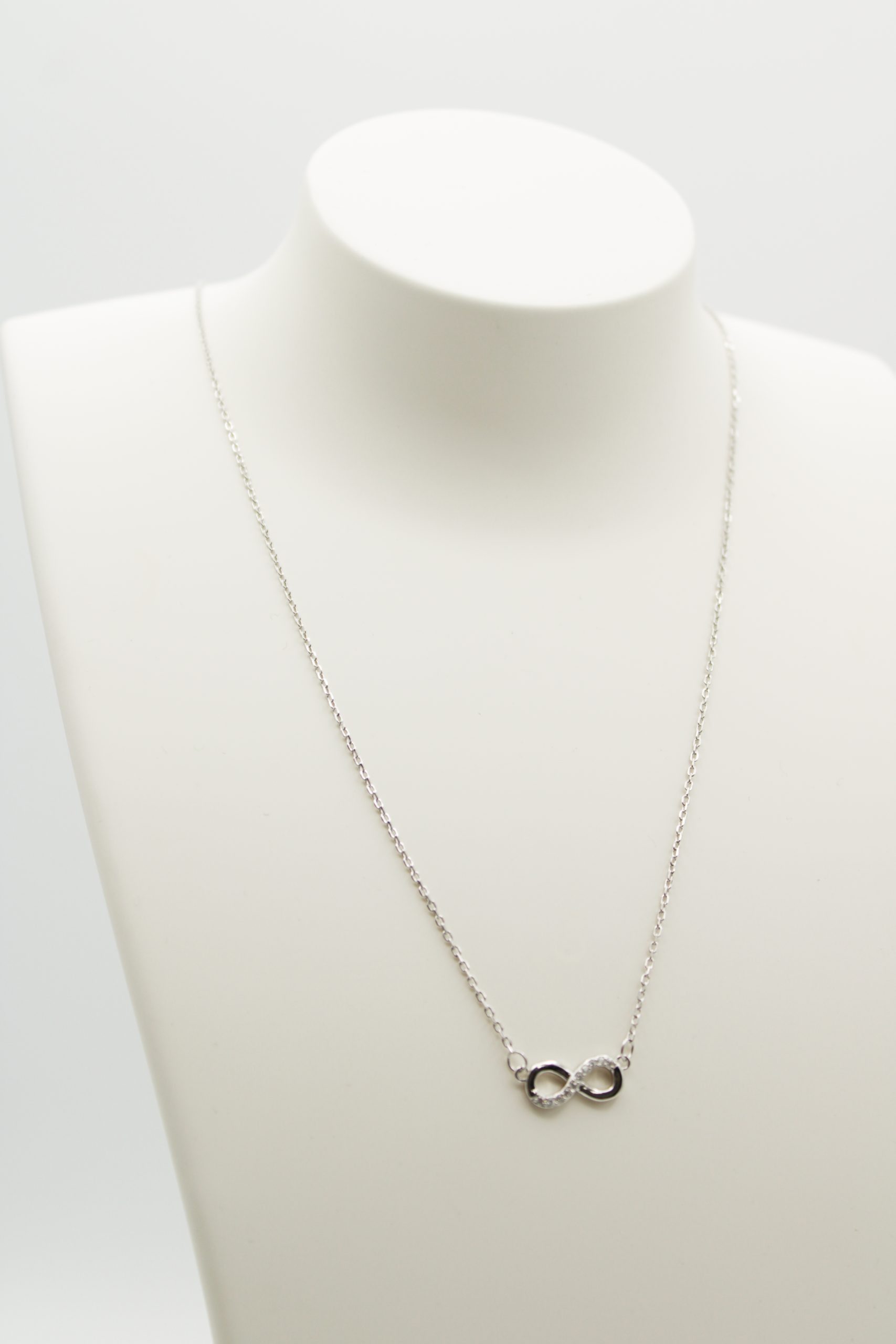 Colar com motivo do infinito e zircónias.