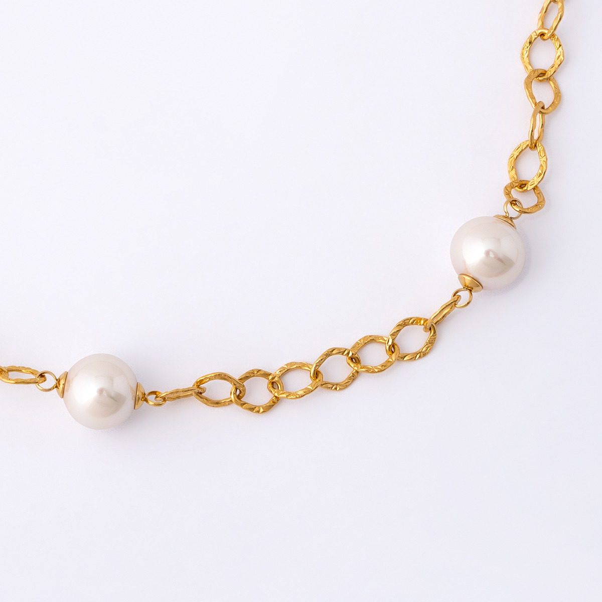 Colar de pérolas Aina com pérolas orgânicas de 8 e 10 mm, produzidas na ilha de Maiorca e anodado à mão por artesãos especializados. Prata de lei 925 dourada com banho de ródio.