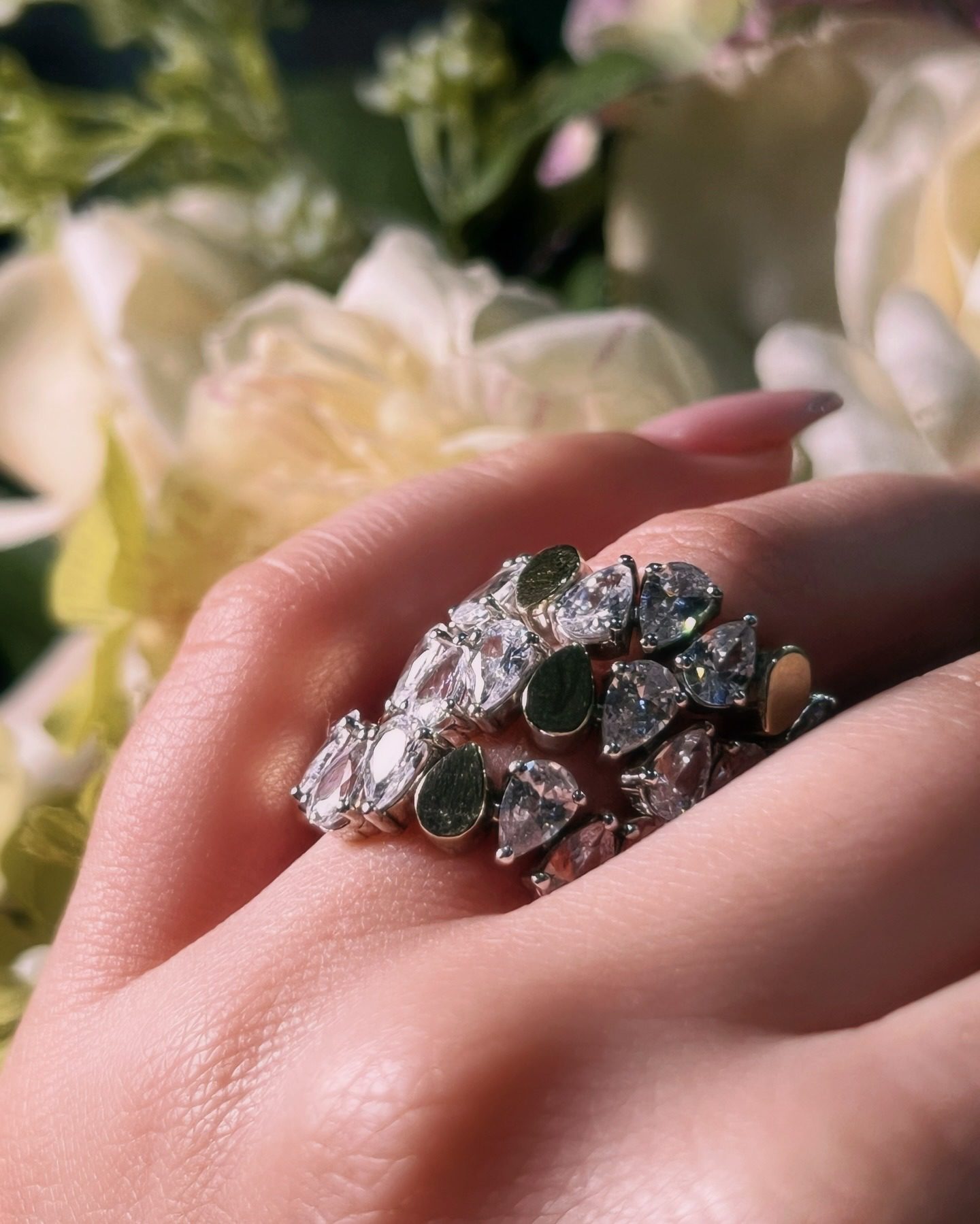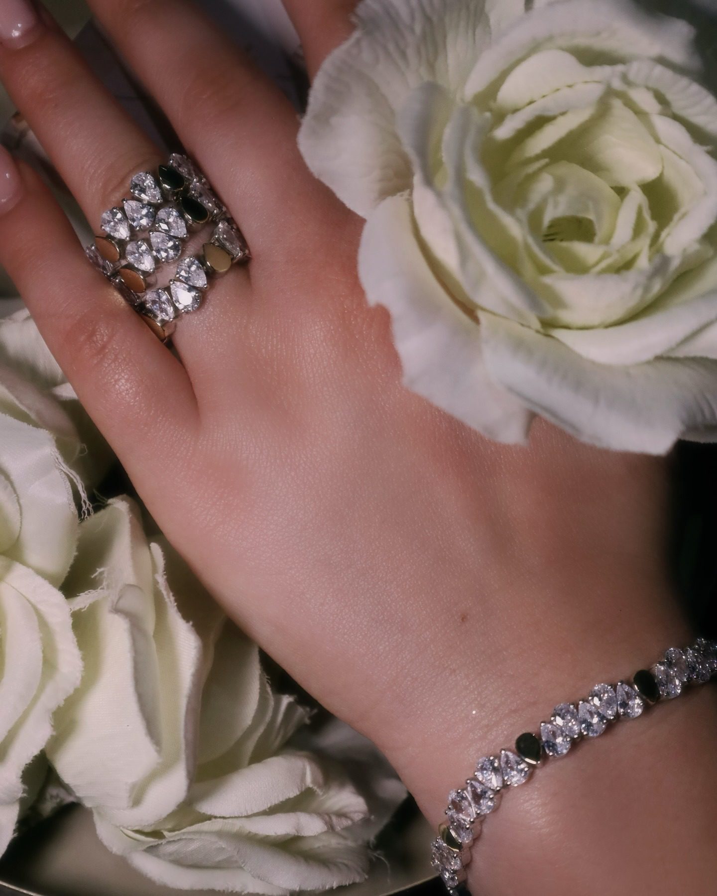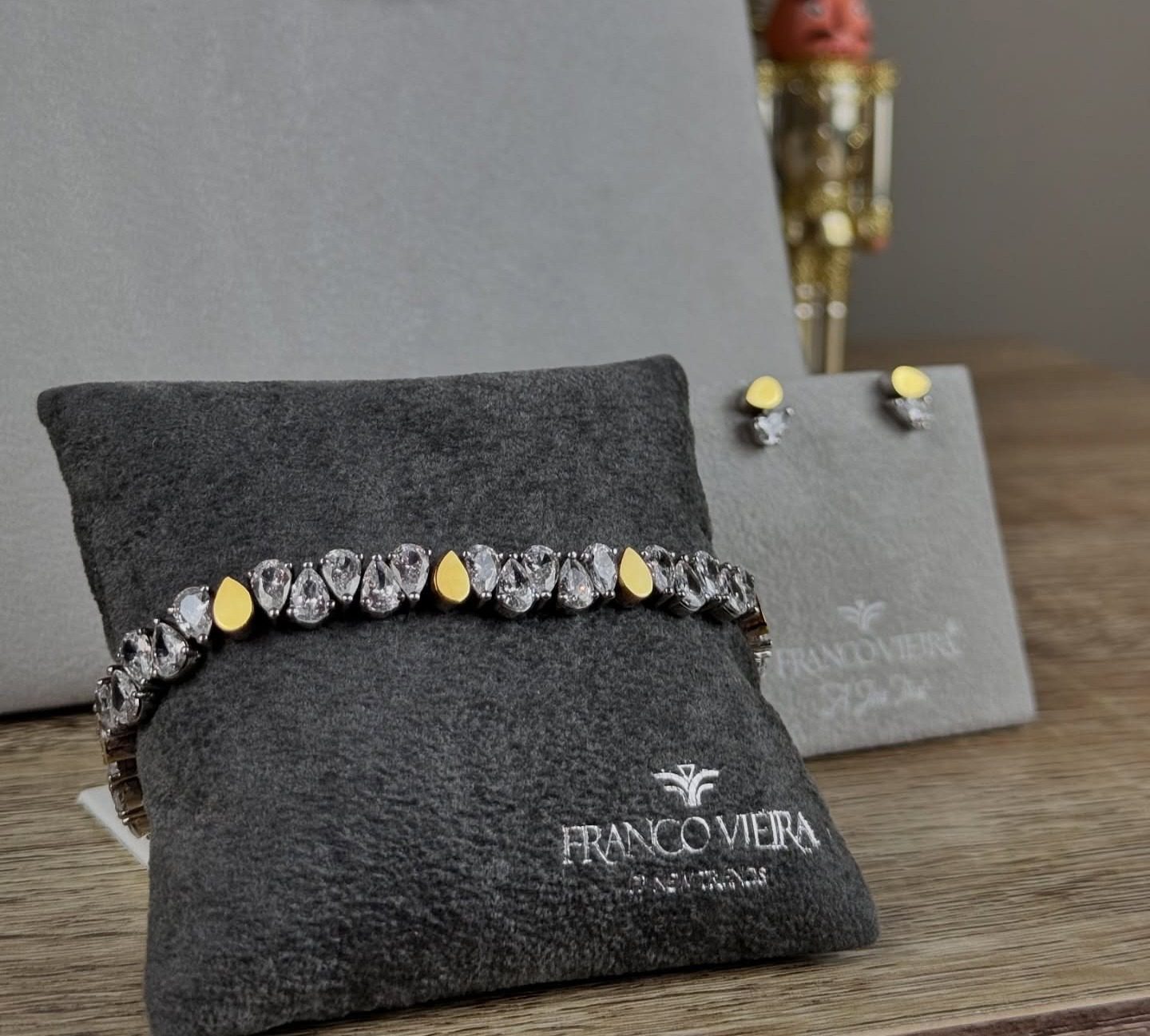 Conjunto em prata de lei e ouro de 9 kt com zircónias.