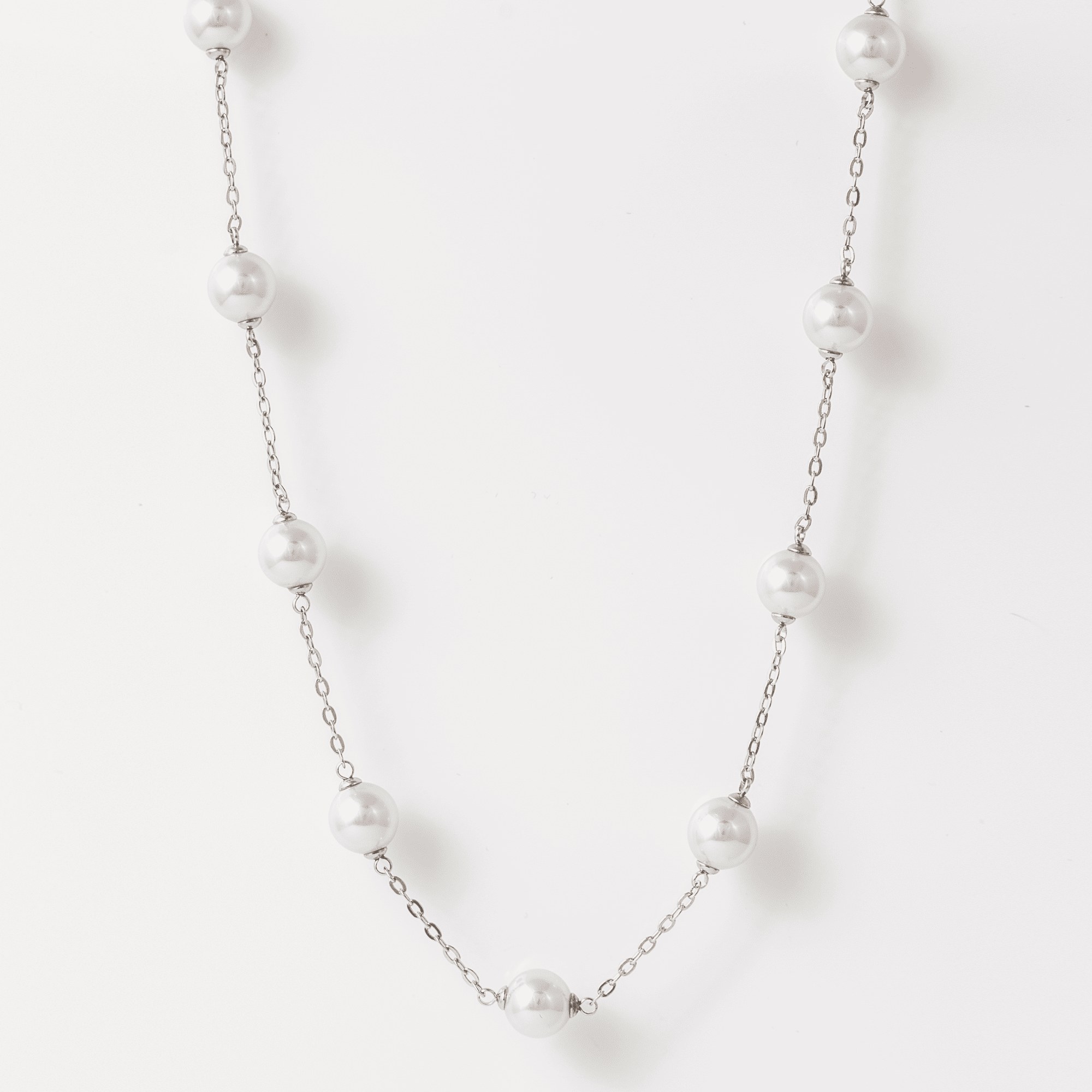 Conjunto Ilusion com pérolas orgânicas de 8 mm produzidas na ilha de Maiorca e anodado à mão por artesãos especializados. Com banho de ródio.
