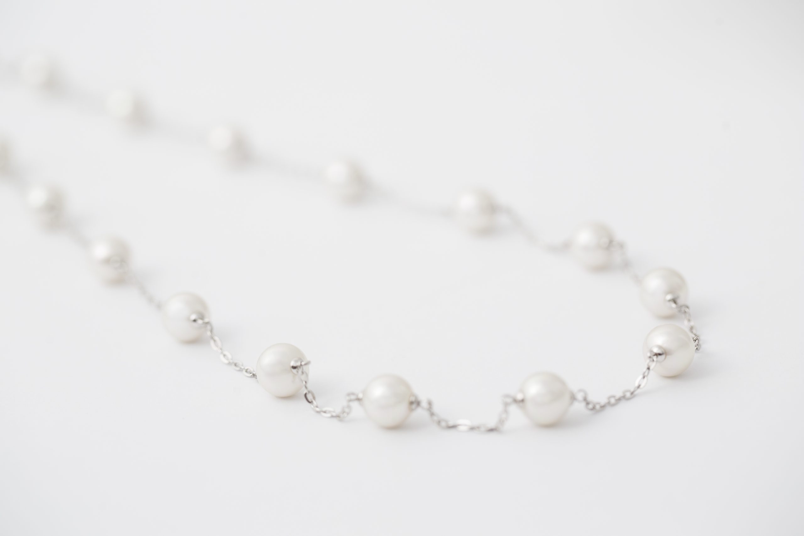 Conjunto de pulseira e colar em prata de lei com pérolas orgânicas.
