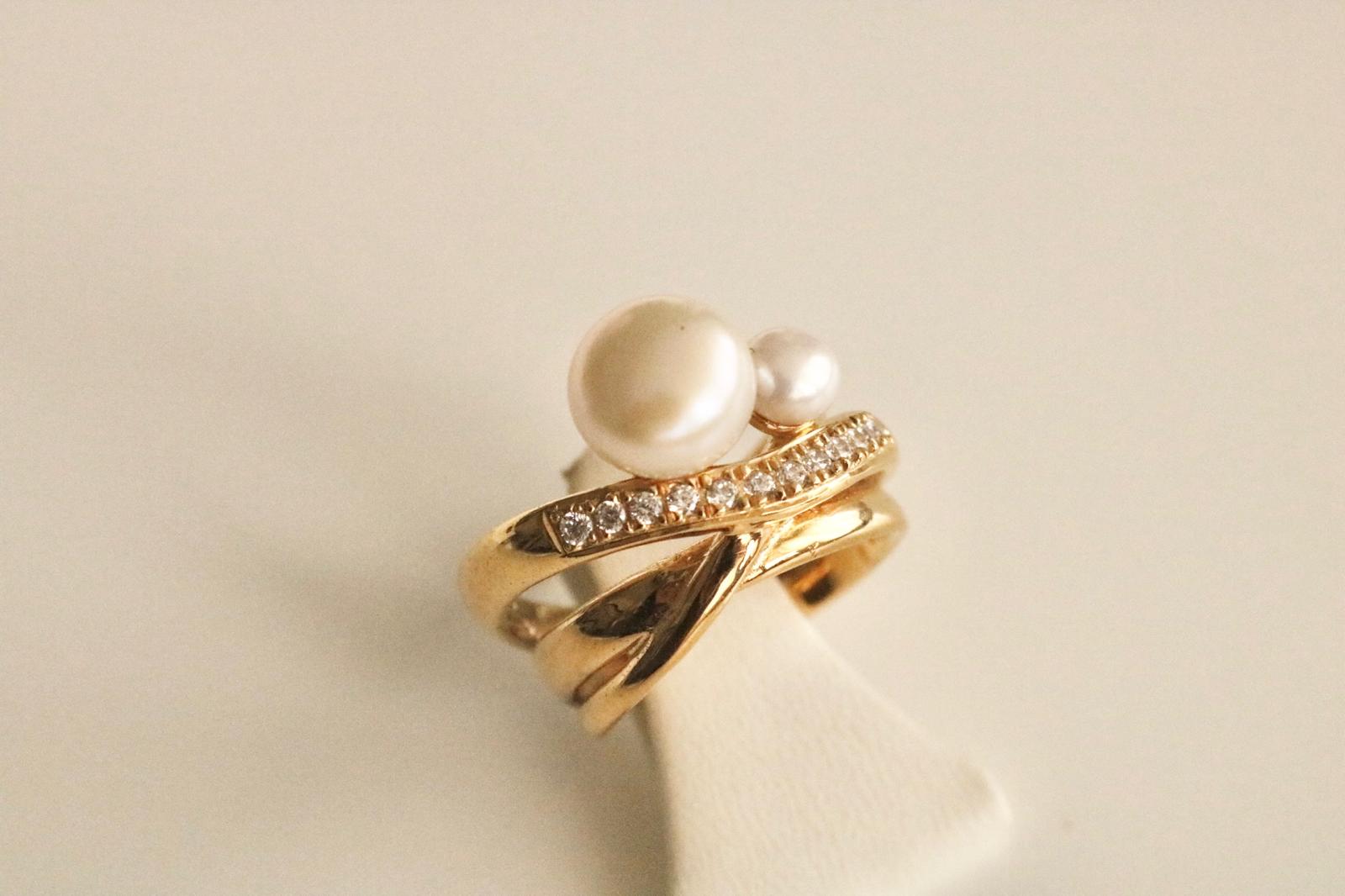 Conjunto colar e anel em prata de lei com pérolas de água doce e zircónias.