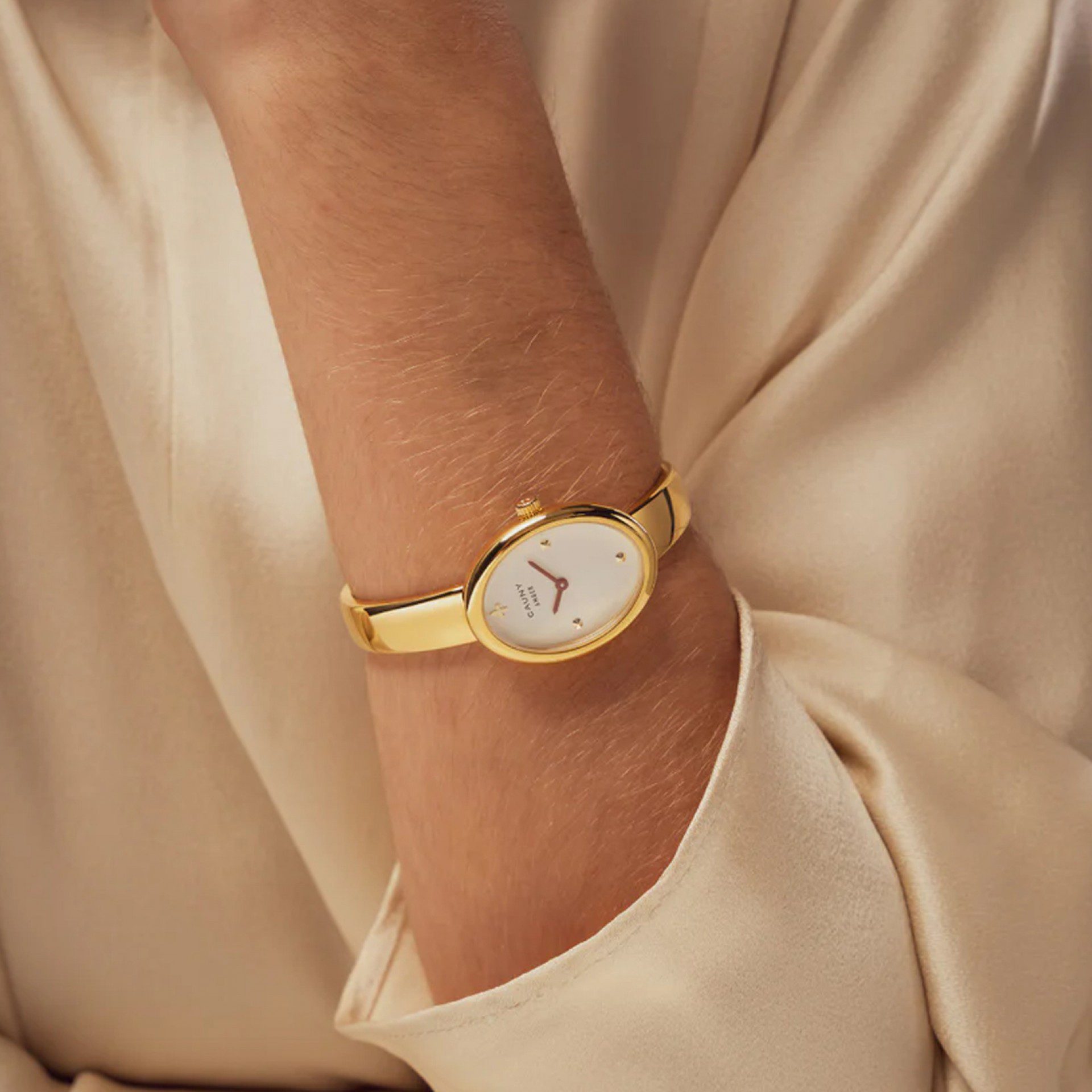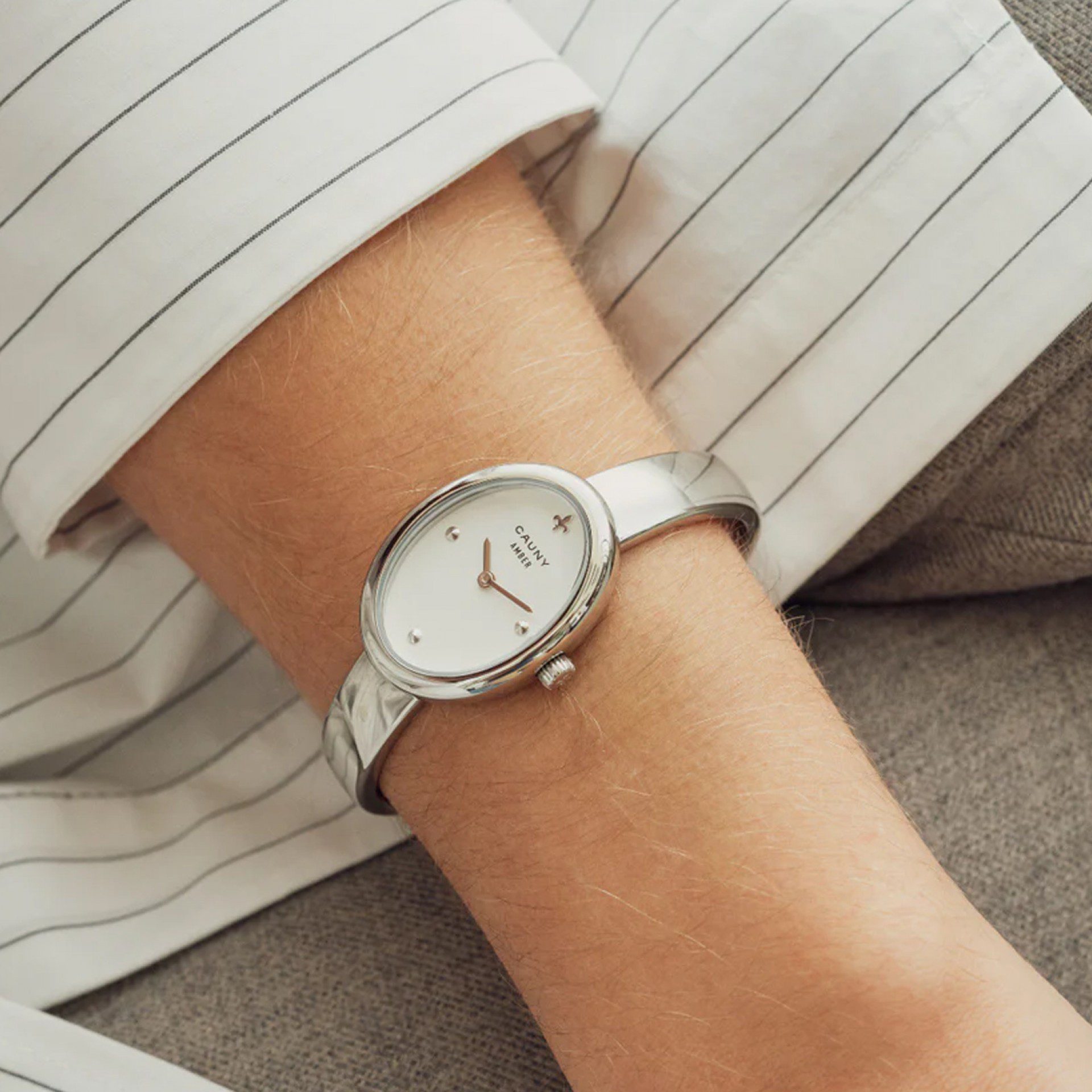 “Criado para a mulher que aprecia um relógio com a presença de uma jóia, o Cauny Amber destaca-se pela sua caixa oval e bracelete metálica fluida. O resultado é um relógio feminino, elegante e confortável, com um aspeto e um toque sofisticados. Cada variante apresenta um tom e uma personalidade distintos, preservando o espírito precioso e contemporâneo da coleção.”