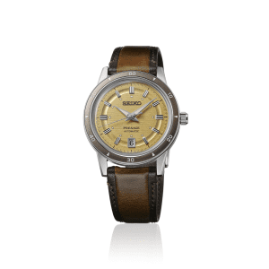 Relógio Seiko Presage Style60’s em Pele com movimento automático com corda manual, calibre 4R35.