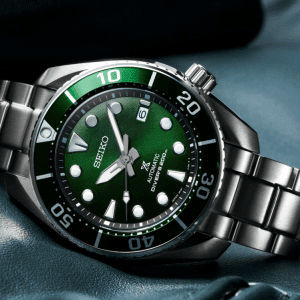 Relógio Seiko Prospex Mar Diver´s Sumo Verde com movimento automático com corda manual, calibre 6R35.
