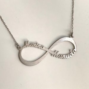 Colar em prata de lei com nome no seguimento do infinito.
