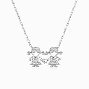 Colar em prata de lei duas meninas com zircónias.